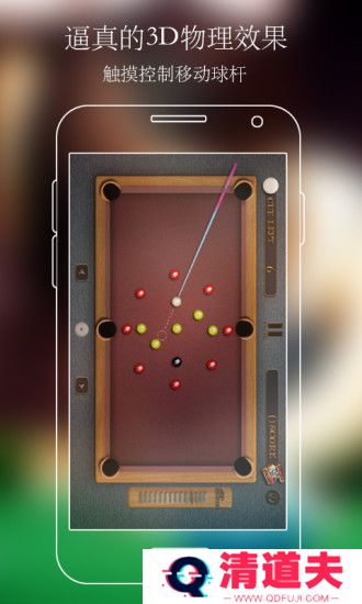 2. 真实场景:精心设计的台球场景,包括专业的台球桌、逼真的球杆与球体模型,营造出沉浸式的游戏体验。