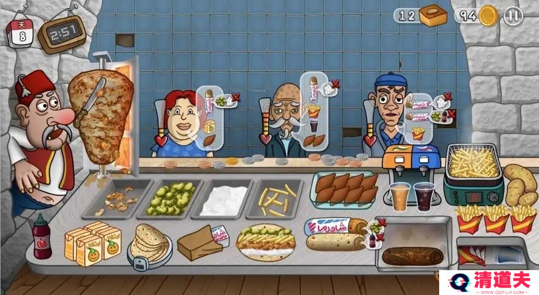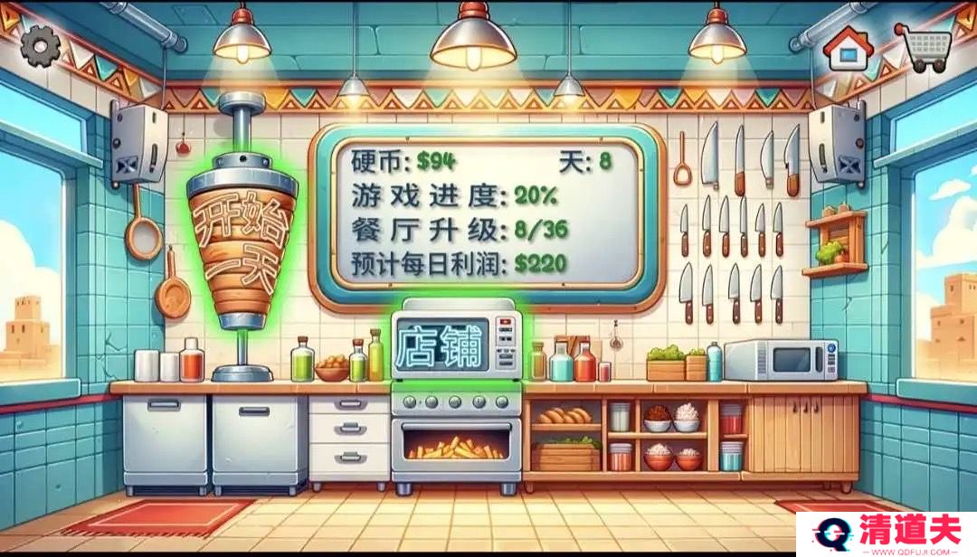 3. 经营店铺:通过购买食材、制作沙威玛、接待顾客等操作,逐步提升店铺的知名度和盈利。