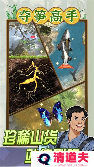 《夺笋高手》是一款以模拟“赶山”体验为题材的模拟经营游戏。玩家在游戏中扮演赶山人,进入深山探寻各种珍稀山货,通过采摘、挖掘和售卖这些山货来赚取金币,进而解锁更多山货种类和山头,扩展自己的经营规模。
