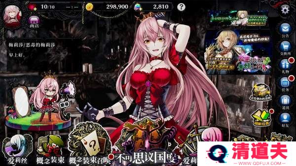 1. 独特的暗黑童话风格:游戏融合了暗黑元素与童话故事,角色设计独特,每个“Alice”少女都具有病娇属性,并配有专属CG。