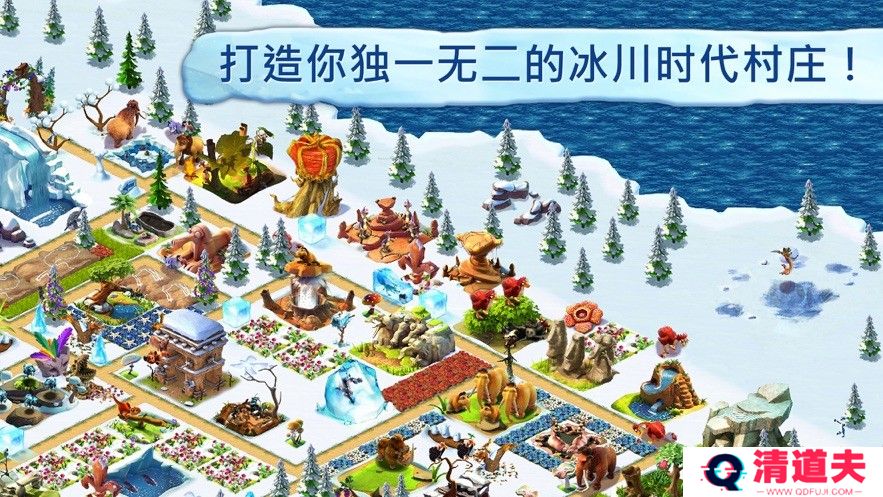 冰川时代村庄安卓版是一款基于热门动画电影《冰川时代》改编的模拟经营类手机游戏。在这款游戏中,玩家将扮演一位史前村落的首领,带领你的动物村民们在冰川时代中生存并繁荣发展。通过建设村庄、种植作物、养殖动物、探索未知区域,你将体验到一段充满乐趣与挑战的史前冒险之旅。