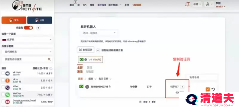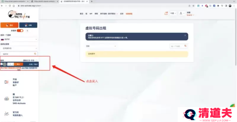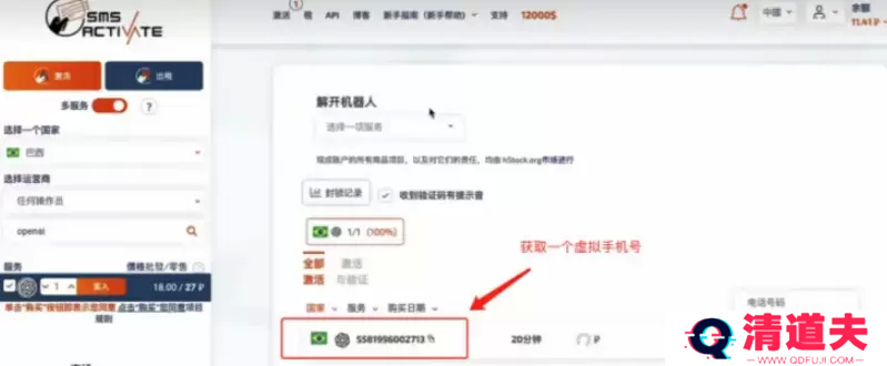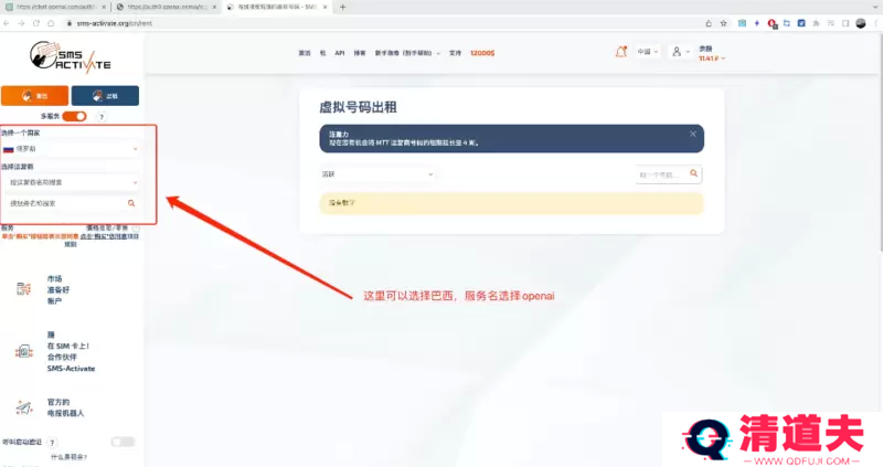 9、可以去租借虚拟号码,选择巴西,服务名选择[openai]。