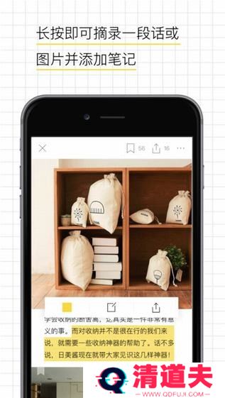 3、还有一个不错的功能,那就是“简洁优美的笔记”,可以方便在文章中长按就可以轻松摘录任何一段话、一张图,并且添加自己的笔记,遇到任何值得收藏的好物、好去处、小技巧都可以方便收集。