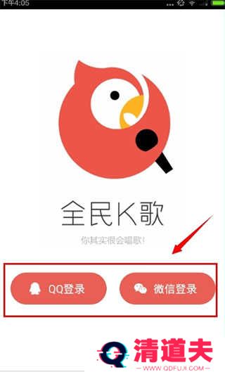 1、打开全民K歌APP界面,选择登陆方式。