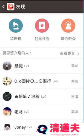 6、点击发现,即可了解留声机、我是评委、最近听众等信息。
