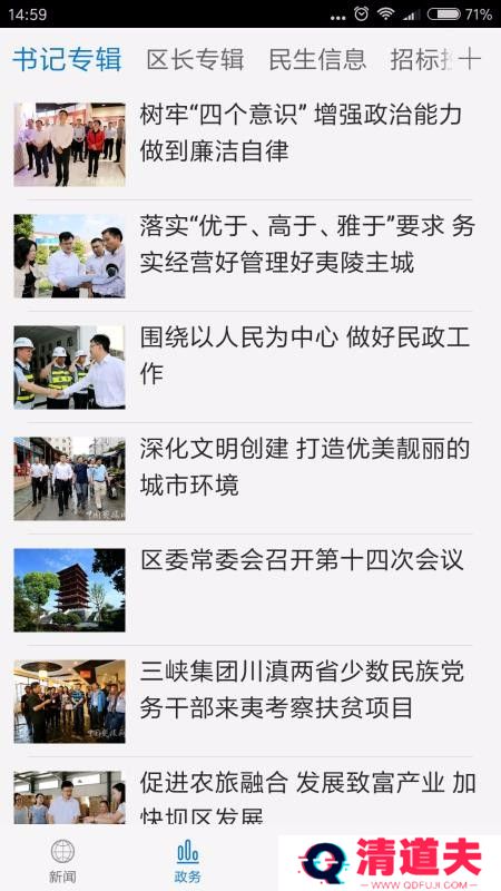 云上夷陵客户端“新闻”、“政务”、“服务”、“我”四大版块,用户还可根据页面上方的标签自主选择相关内容,打造个人掌心资讯宝。