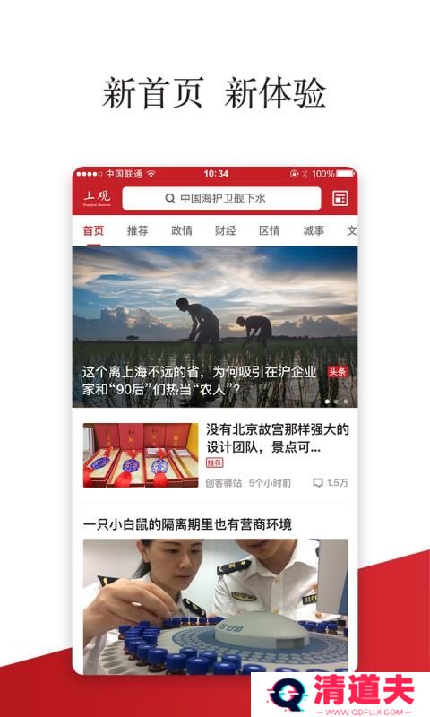 上观新闻使用方法进入app首页,阅读推荐的热门新闻