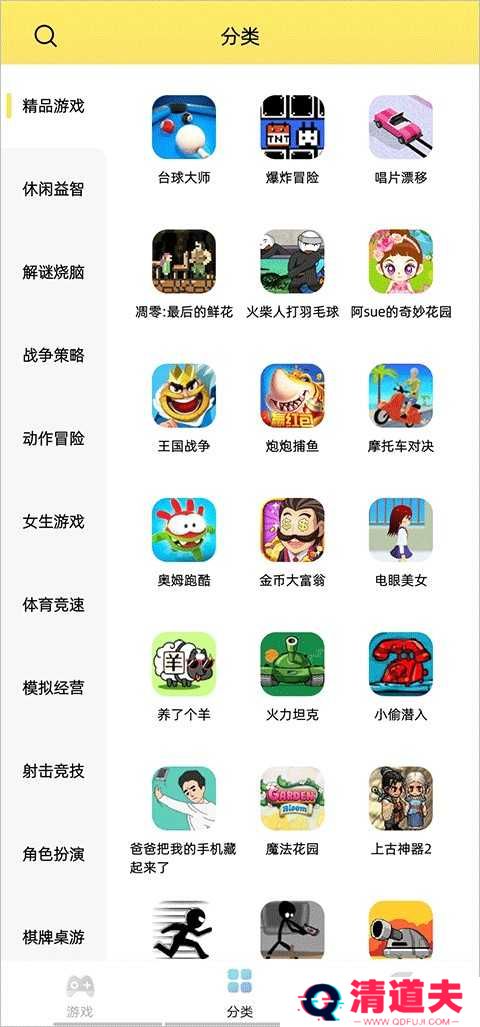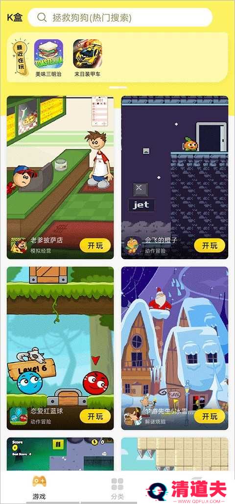 2、在分类界面有着超多类型的游戏,你想玩的这里都有!你还可以直接搜索你想玩的游戏。