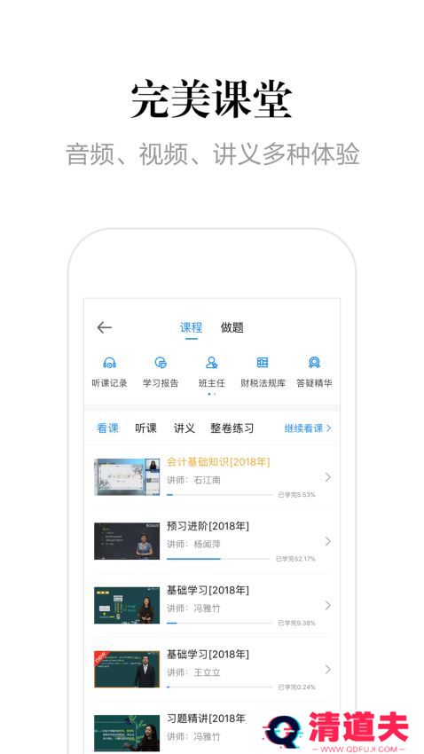 中华会计网校app是一款专业的学习应用,主要提供丰富的线上教学资源和海量的题库,帮助学子提高成绩。这款应用推送关于学习的新闻资讯,包括各种考试、就业、实务等,用户可以随时了解近期的考试安排,能够了解本专业的就业情况;这里有着丰富的在线课程,课程内容涵盖全面,包括会计专业的科目,全部课程有知名院校的教师开设,每天都直播不同的客车能够知识点。