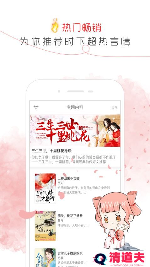 《香网小说》是女性原创文学网站香网的手机客户端,旨在为女性朋友们提供好看丰富的言情小说,同时也提供漫画、影视改编作品签约,读者在这里可以找到喜欢的小说,作者们有机会将自己作品搬上荧屏。