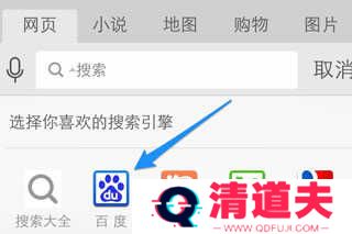 6、值得注意的是,如果在 UC 主页面中搜索的话,不会用之前设置的百度搜索。