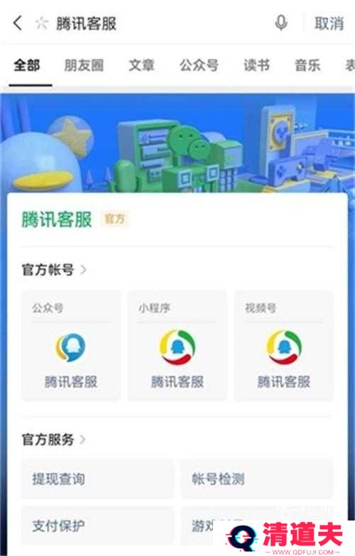 1、首先我们需要打开玩家的个人微信,然后关注腾讯客服公众号,如下图。