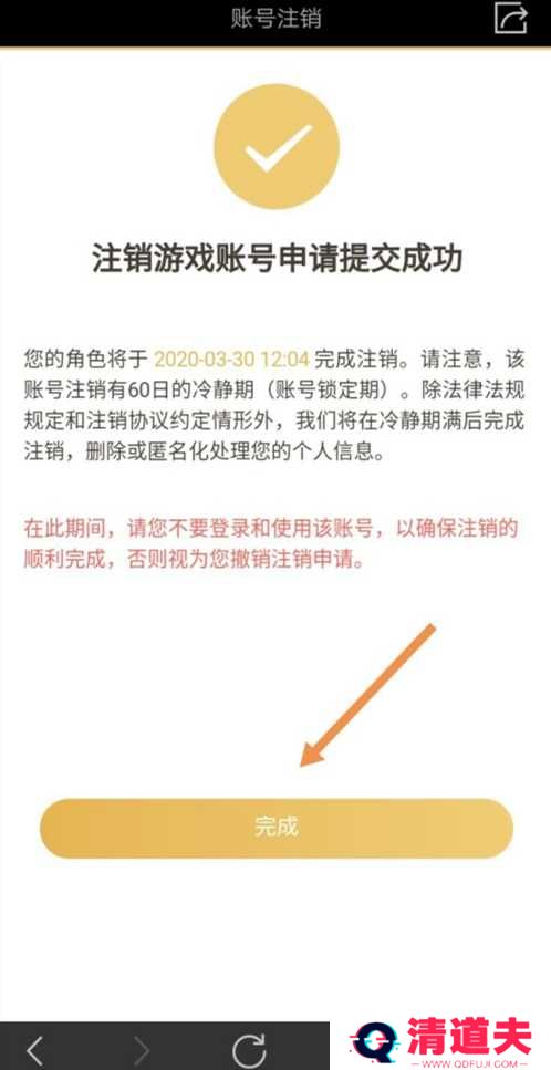 7、申请提交成功,点击完成就完成销号了。