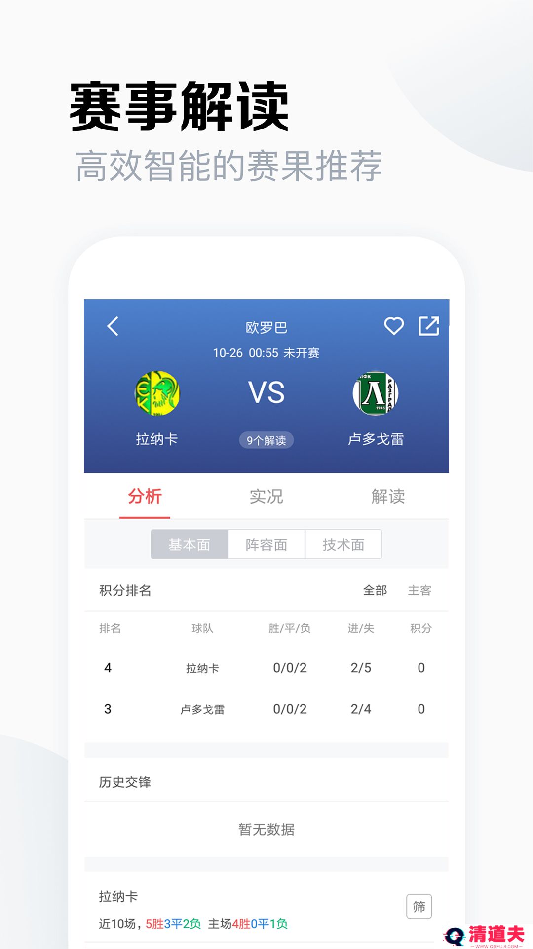 包含五大联赛、热门赛事直播信息:比分、进球、红黄牌数据等;即时准确比分直播。