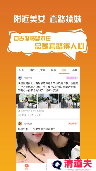 2、附近美女,套路撩妹,自古深情留不住,总是套路得人心