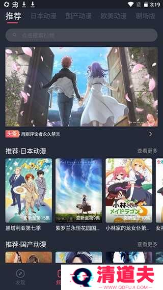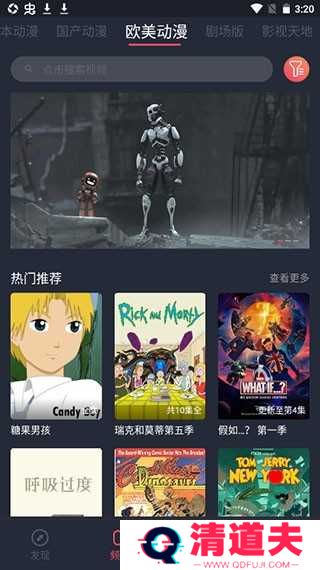 2、滑动屏幕,转换动漫类型模块,如欧美动漫