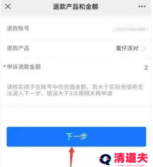 4、根据您的需求,输入您希望退款的金额。如果是全额退款,则输入相应的充值总额。完成上述信息填写后,点击“下一步”继续退款流程。在提交退款申请后,网易家长关爱平台的工作人员会进行审核。审核通过后,退款金额将会按照您原先的支付方式原路返回。