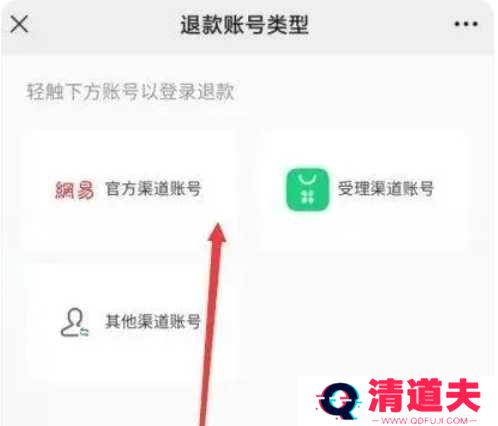 2、根据提示选择您孩子所使用的游戏账号的渠道,比如是网易官方账号、还是通过其他平台(如苹果、华为等)登录的账号。