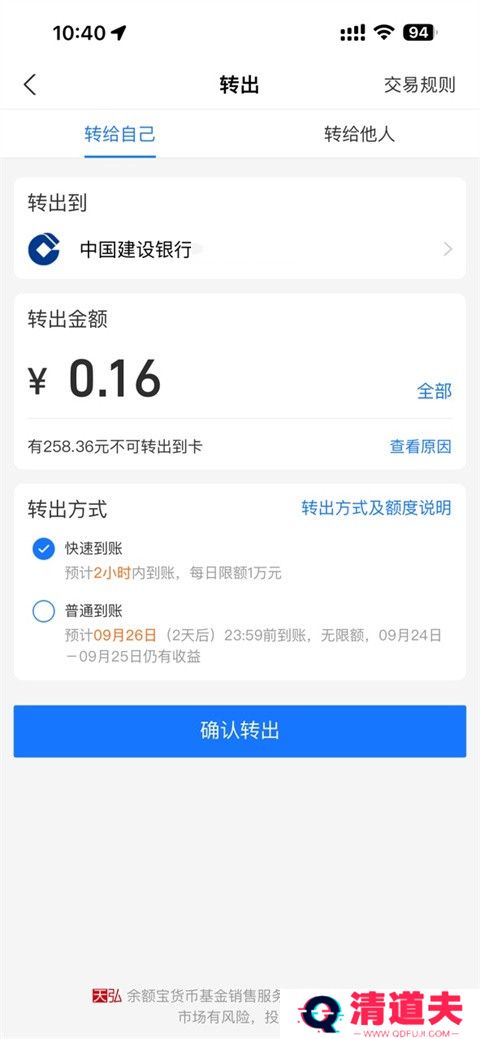4、将刚刚转入的钱转出到银行卡中;