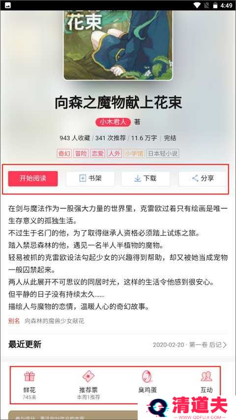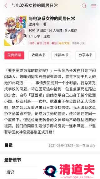 4、随便选择一本小说都可以进行阅读,还可以进行收藏、分享等等。