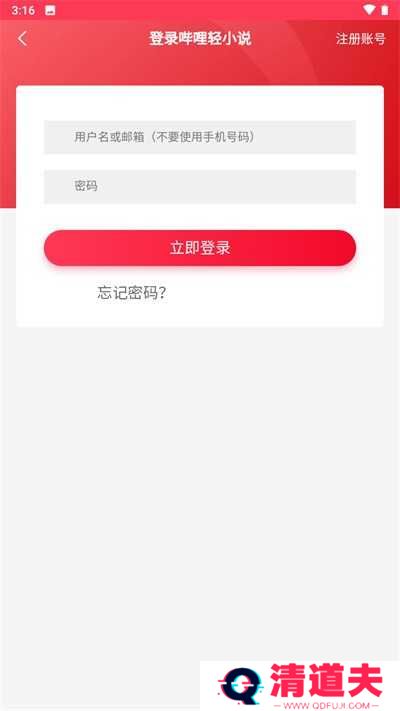9、激活账号后,您可以使用注册时填写的手机号码或电子邮件地址以及设置的密码登录哔哩轻小说账号。