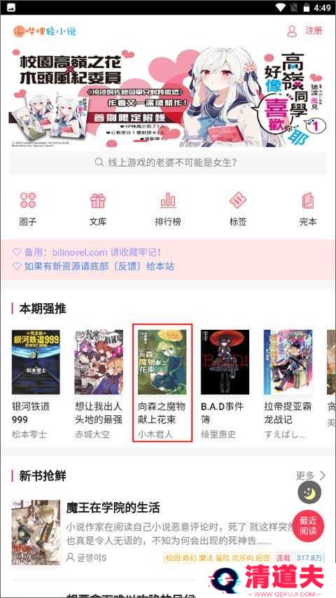 2、来到主页您可以浏览到海量的哔哩轻小说