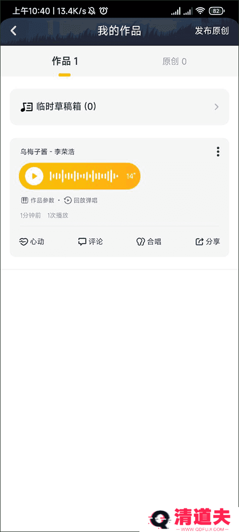 可以看见小编现在已经发布了一首音乐作品,这个时候我们点击一下这个作品进入详情界面。