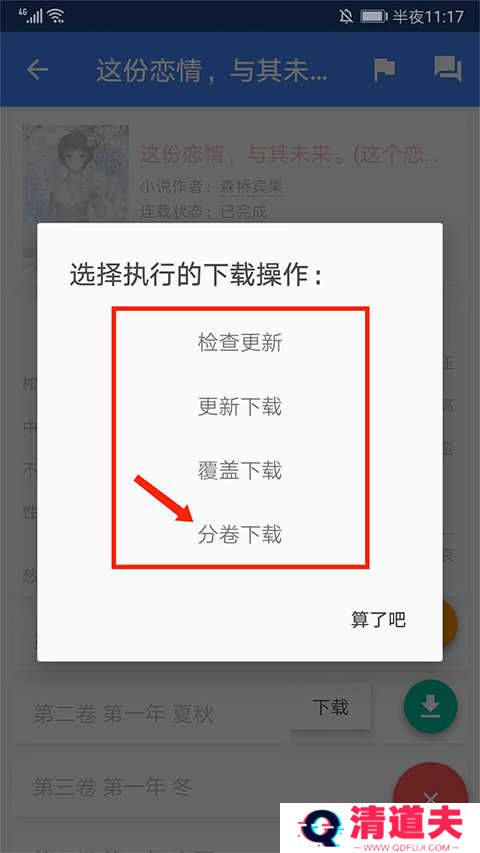 4、包括检查更新、更新下载、覆盖下载和分卷下载,用户可根据需求选择相应的下载方式,这里以【分卷下载】为例;
