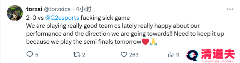 G2和MOUZ战队部分选手分享了自己的赛后动态。