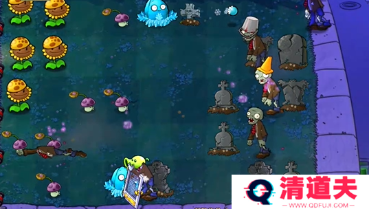 5、在中间种植多个寒冰坚果,在坚果左侧补充喷菇投手。