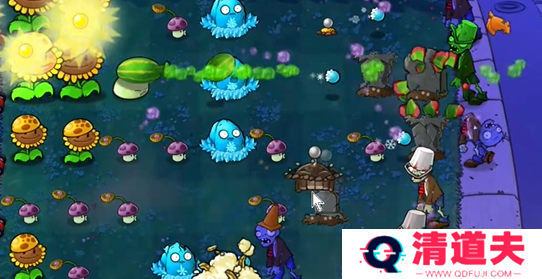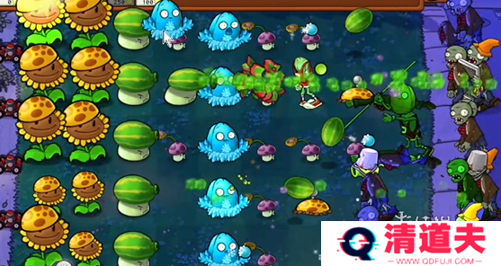 7、最后在左侧补充一列西瓜喷菇和一列寒冰坚果即可过关。