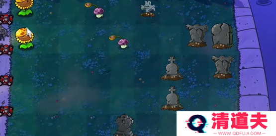 2、先在左侧种植两个向日葵,在中间补充两个喷菇投手。