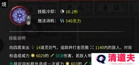 4、神通:如剑影类神通,配合剑的身法,每5秒放一个剑影。