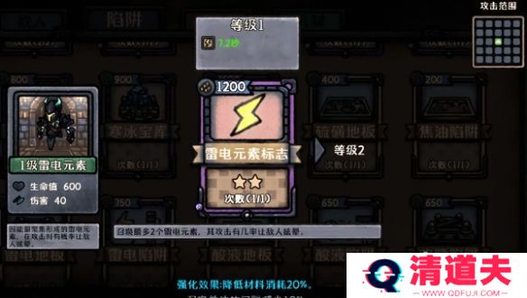 3、雷电陷阱:雷电陷阱会对敌人造成闪电链攻击,能够拖延敌人的进攻节奏。