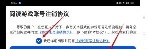 4、在此步骤中,请勾选确认游戏账户注销协议,并按下下一步按钮。