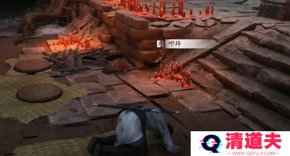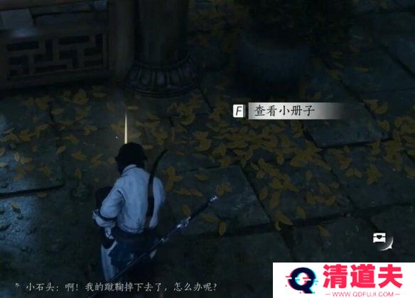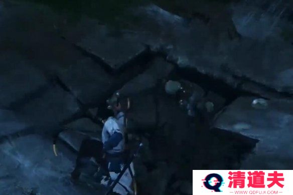 5、根据提示,使用千斤坠,砸开地面,跳进去。