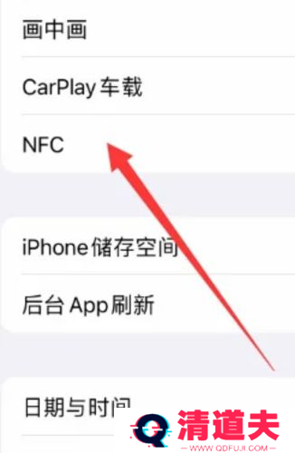2、在“通用”菜单下,轻触近场通讯(NFC)功能。