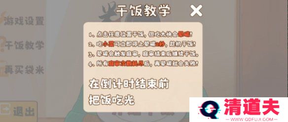 1、点击任意位置干饭,若吃太快会晕碳。