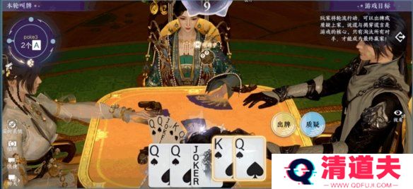 当剩下两名玩家时,如果其中一人打光手牌,另一位必须对其进行疑问。