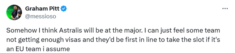 Complexity的经理messioso写道,他已经感觉奥斯汀Major的参赛名单上会有Astralis。