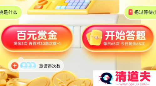 4、百元赏金:用户每天会有三次机会,用户需在规定时间内完成就能获得一定数额的红包,然后大家可通过邀请好友和答对三十题获得次数。