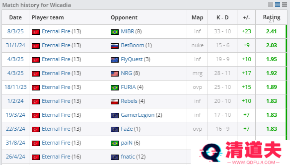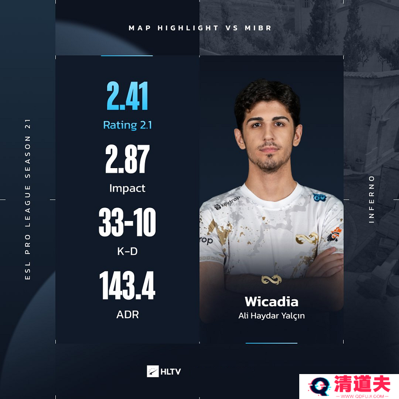 MIBR进入1-1组。队内步枪手Wicadia更是在图二Inferno打出炸鱼般表现,仅上半场就拿到25-3的K-D,3.33的rating爆炸数据,单图拿下33-10的K-D,143.4的ADR和2.41的rating,刷新了个人职业生涯线下赛单图最佳战绩。