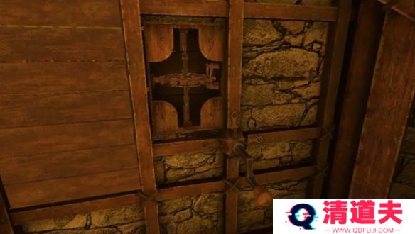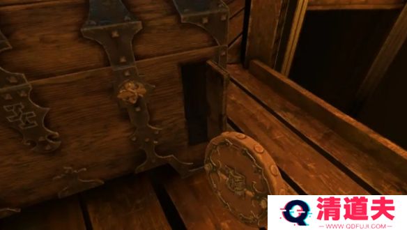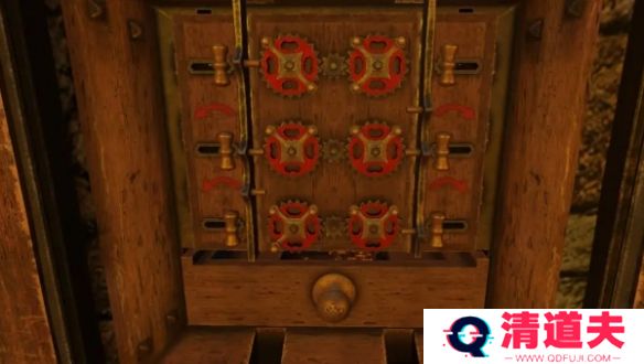 2、点击得到箱子旁的曲柄摇杆,将曲柄木杆插入插孔,摇动木杆,放入木头齿轮,再次摇动木杆,打开机关。