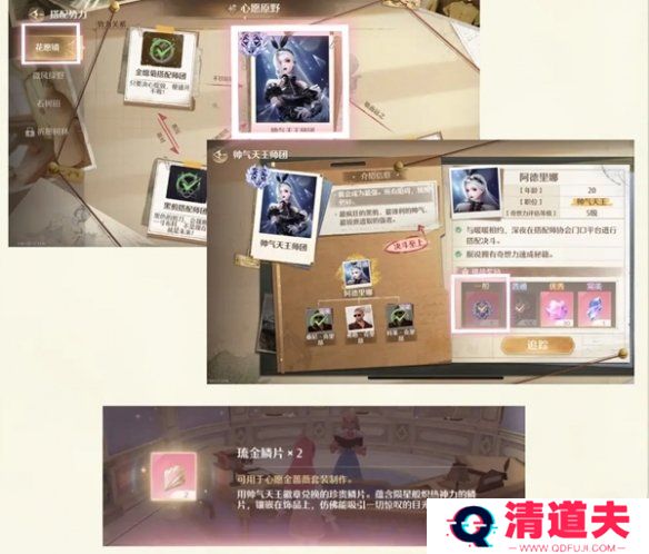3、琉金鳞片:在搭配势力中,选择花愿镇,击败阿德里娜,能够获得帅气天王徽章,可以兑换两个琉金鳞片。