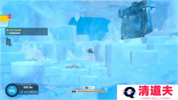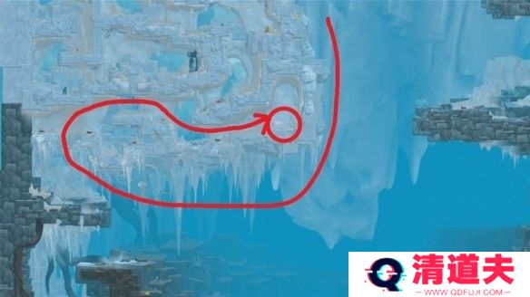 11、再次前往冰河区域,按照下图路线前进就能看到白鲸。