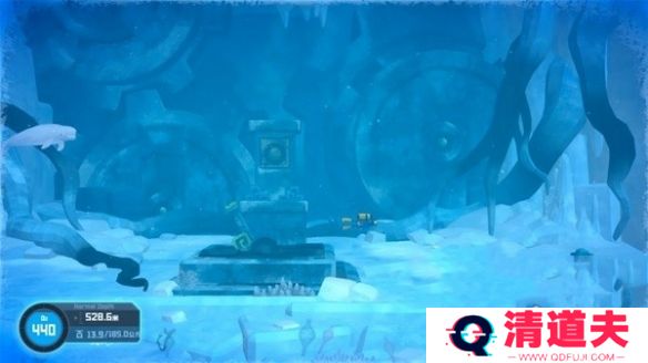 7、来到冰河区域向右游,使用相机拍下第一个神殿。