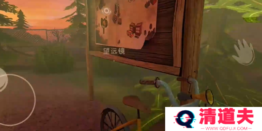 12、在钓鱼点附近找到望远镜后,将其放入自行车。