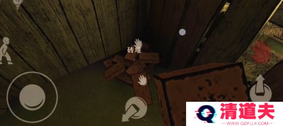 3、触发剧情后,回头拾取砖头,抛出砖头砸碎附近的木门。