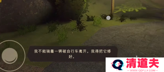 4、离开木屋,拾取周围的道具,在附近拾取道具,修理自行车。