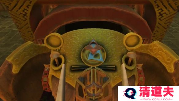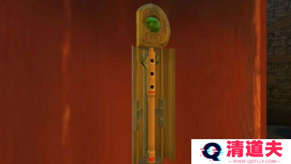 15、将两截笛子组装,把笛子放入机关中,拖拽两边的滑块,盖好上面的盖子,开启下一层机关,拖拽象腿中的盖子,得到导轨。